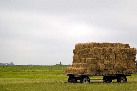 Truck With Hay Trailer in Field