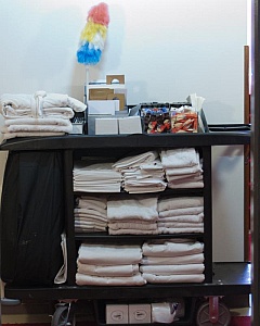 Hotel cleaning cart.