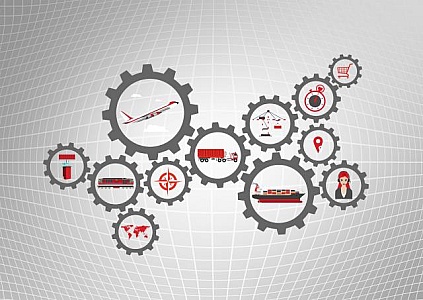 Global logistics concept with industry icons